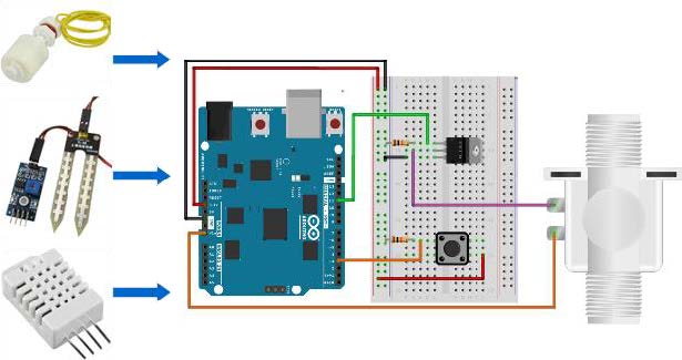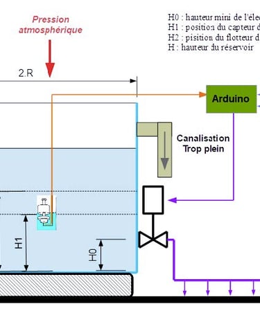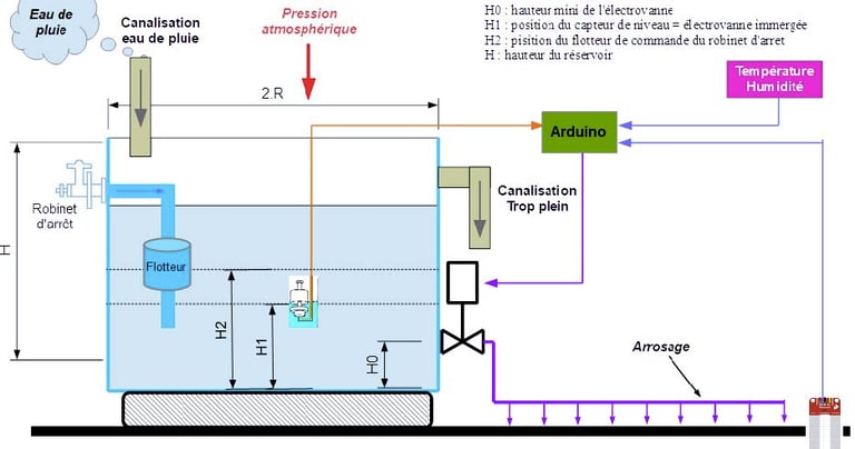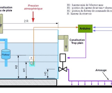 On veut arroser une parcelle à partir de la récupération de l’eau de pluie à partir des données environnementales (humidité de la terre, température de l’air …)