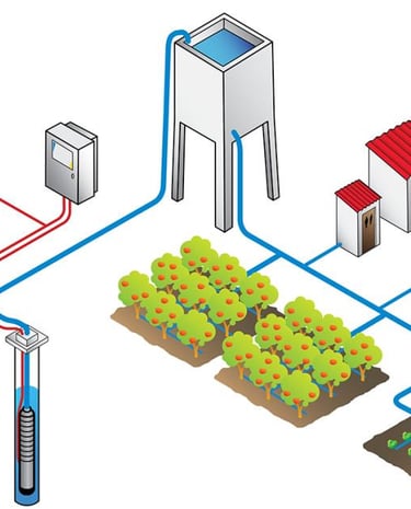 Nous devrons déterminer le débit, la pression et la hauteur de refoulement pour un fonctionnement optimal du système d'arrosage.